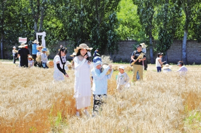 除传统机械麦收外,朝阳区还在多处农田开展了“农业+文旅”的沉浸式亲子田园体验活动。小朋友们头戴草帽、身背竹篓,亲手体验饱满麦穗在镰刀下完成“生命的蜕变”。现场还设置了石磨碾轧、草帽绘制、田间骑行等项目,为都市家庭开启了一场回归自然的美丽乡村之旅。