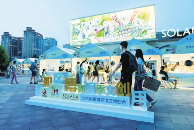 本报讯 (记者马宇晗)7月4日,由朝阳区文化和旅游局主办的“北京博物馆消夏文创妙会”在蓝色港湾商圈开幕。该活动作为2025朝阳区博物馆活动季文创月的首场活动,以“融荣共生——城市中触手可及的博物馆”为主题,汇聚了50家文创品牌,打造集文化展示、创意消费、互动体验于一体的文商旅体融合新场景,为市民游客带来一场别开生面的文化盛宴。