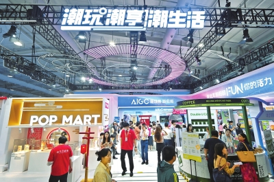 逛展就像拆盲盒,处处是彩蛋,时时有惊喜。9月10日,2025年中国国际服务贸易交易会开幕。在首钢园9号馆文旅服务专题朝阳展区内,人潮涌动,热闹非凡。赏萌动的非遗Molly全国首秀,拆一颗奇梦岛的盲盒彩蛋,到2125年看木兰挥剑……朝阳文旅展区以一系列新技术、新场景、新产品、新服务,让科技与烟火气同频,文化与消费共振,带领市民游客一秒沉浸非遗,一秒穿越未来,一站式体验“潮玩潮享潮生活”。