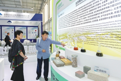 此外,朝阳环境集团还通过展板展示了公司在技术研发、建设运营等方面的经验成果,用详实的数据、醒目的图片以及再生路面砖、再生仿石材砖等实物,展示出城市生活垃圾、餐厨/厨余垃圾、危险废物等多来源、大规模城市废弃物园区化协调处理的朝阳解决方案。