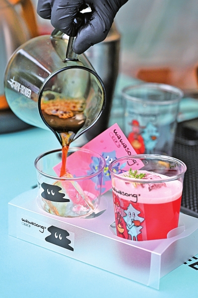 市集上,狮咖堂推出了可以吃的“曲奇咖啡杯”;N44°CAFE的冬季限定“黄油巴斯克拿铁”;朝阳文旅集团旗下自主孵化的森系咖啡品牌Double U Coffee,也带来了多款精品咖啡以及周边文创产品,传递绿色生态、健康积极的生活态度。而ISSUE.01咖啡店还与潮牌服装OAMC推出了联名活动——买一杯咖啡+15元即可参与“盲翻布料牌赢取品牌服装”活动。