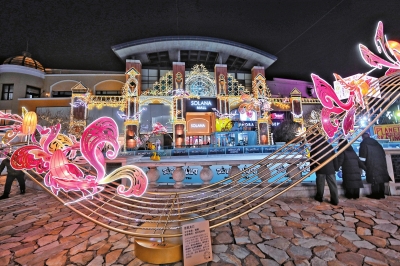 蓝色港湾相关负责人介绍,本届灯光节突破传统商业节庆格局,构建起“非遗内容创新、双城联动深化、城市精神赋能”的三位一体架构。国家级非遗传承人饶宝莲团队将岭南剪纸技艺创新转化,打造出可沉浸互动的立体光影装置,让非遗从静态观赏走向动态体验。灯光节还搭建平台,让岭南剪纸的细腻与京城灯光的恢弘相映,女子英歌舞、青狮表演等南方非遗也首次北上,实现南北艺术共生。