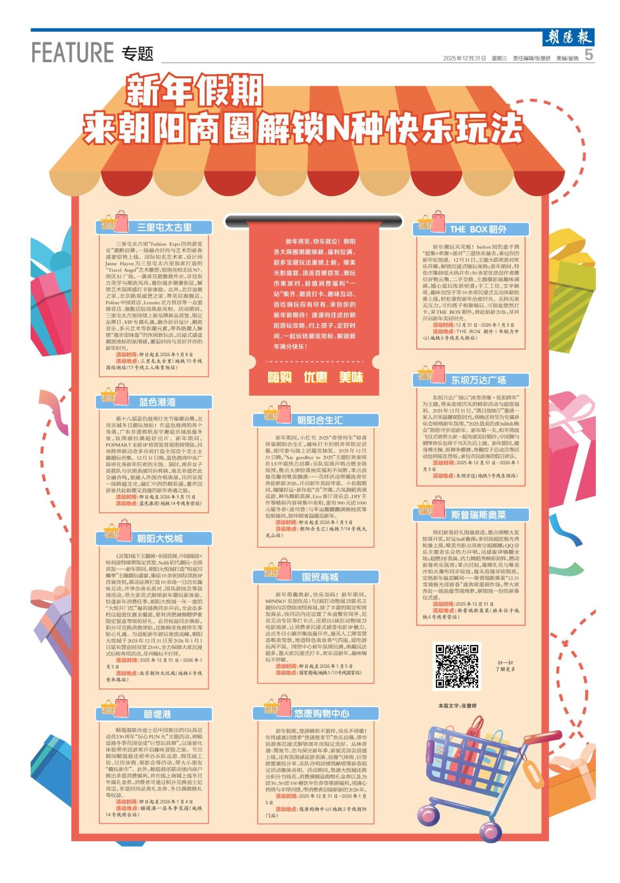 新年将至,快乐就位!朝阳各大商圈潮趣焕新、福利拉满,超多宝藏玩法重磅上新。唯美光影盛宴、顶流首展首发、潮玩市集派对、超值消费福利“一站”集齐,潮流打卡、趣味互动、逛吃嗨玩应有尽有,承包你的新年新期待!速速码住这份朝阳游玩攻略,约上搭子、定好时间,一起玩转潮流地标,解锁新年满分快乐!