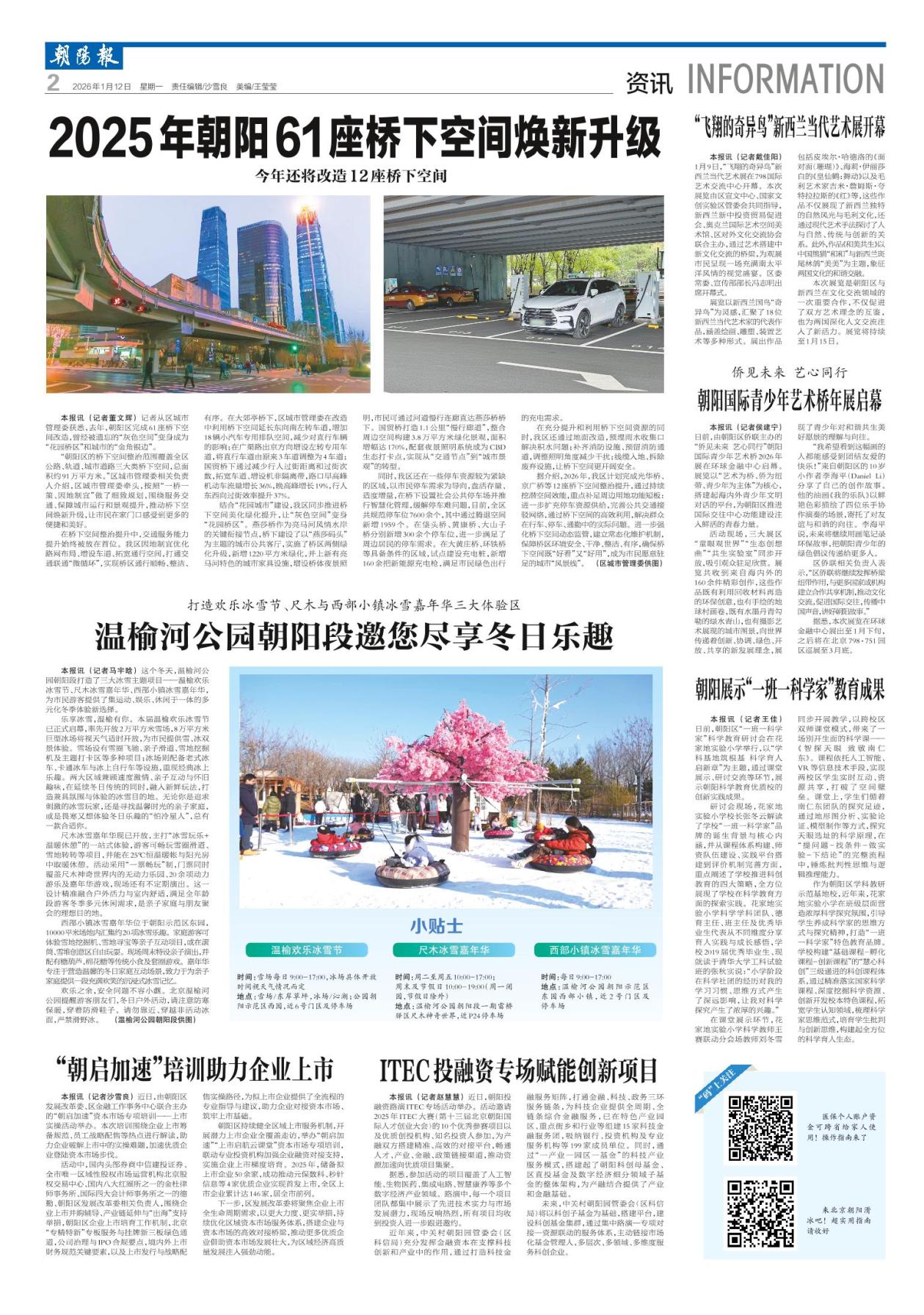 本报讯 (记者马宇晗) 这个冬天,温榆河公园朝阳段打造了三大冰雪主题项目——温榆欢乐冰雪节、尺木冰雪嘉年华、西部小镇冰雪嘉年华,为市民游客提供了集运动、娱乐、休闲于一体的多元化冬季体验新选择。